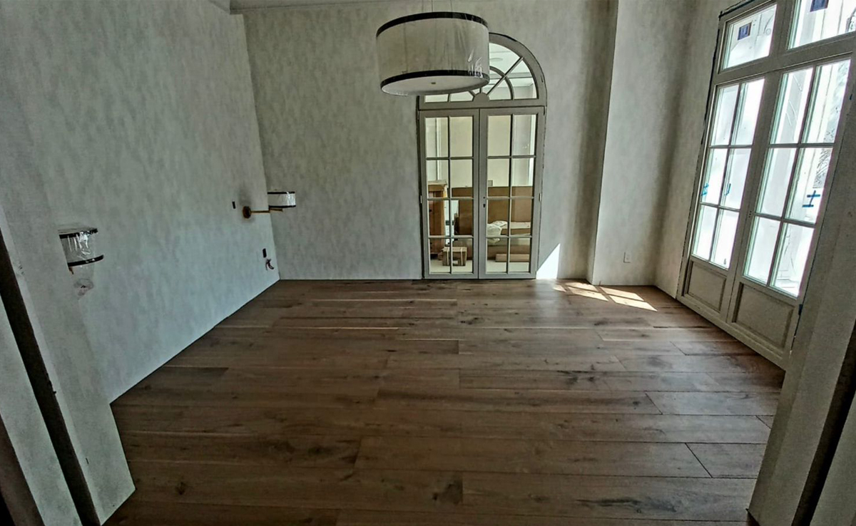 • Piso de Madera Sólida: El clásico indiscutible. Piezas de madera pura que pueden ser lijadas y barnizadas múltiples veces.